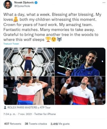 En sus redes sociales, Djokovic escribió: “Qué día, qué semana. Bendición tras bendición. Mis amores, mis dos hijos presenciando este momento. Coronado por años de arduo trabajo. Mi increíble equipo. Partidos fantásticos. Muchos recuerdos para llevar.”