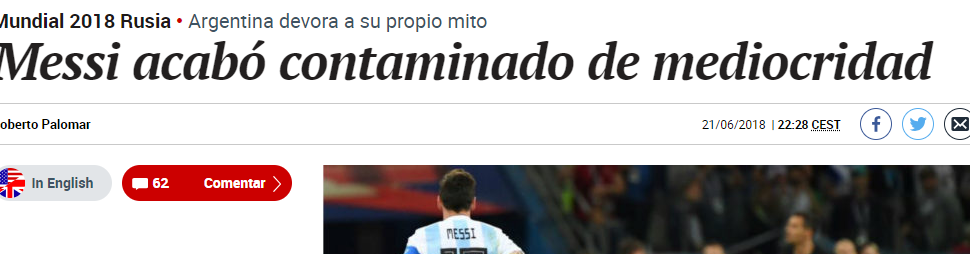 El error de Caballero para empezar perdiendo 1-0 contra el equipo croata es el punto crítico en común de las diversas publicaciones que no logran descifrar por qué teniendo a Lionel Messi, le cuesta tanto ganar a la selección argentina. El sitio deportivo brasileño Lance atribuyó la derrota destacando el buen partido que jugaron los croatas, y señaló las debilidades del grupo argentino: “Contó con una falta grosera del portero Caballero, con la falta de inspiración de Messi y con el óptimo fútbol de Modric para vencer a Argentina por 3 a 0″, aseguraron desde la publicación.