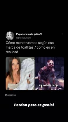 Ante ello, Tinelli, hizo eco sobre las reacciones que se generaron en las redes sociales y compartió un meme que ridiculizaba la postura de Jiménez al mostrar la mancha de sangre en comparación con un monstruo que, por sus gestos, mostraba algunos signos de sufrimiento. “Perdón, pero es genial”, agregó Cande junto al meme.