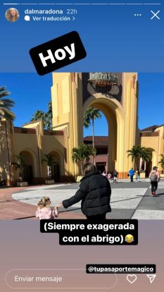Dalma Maradona se encuentra vacacionando en Miami junto a su pequeña hija Roma y se ha dedicado a recorrer los parques más importantes de Disney World y Universal Studios. La niña de 3 años está disfrutando de conocer los personajes adorados de sus películas favoritas y también fascinándose con las atracciones.