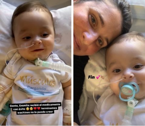 “Lo que costó conseguir este medicamento. Los amo y los re banco”, expresó Maratea en redes, tras presenciar a la distancia cómo le aplicaban el medicamento a Emma.