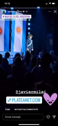 Entre sus personajes clásicos, como Marilyn Monroe, la actriz sumó una desopilante imitación del presidente Javier Milei. Tiempo atrás, Fátima había publicado una foto disfrazada de su pareja y ahora decdió incluirlo como número de su espectáculo.