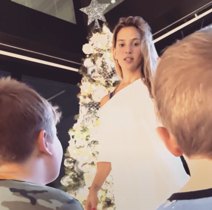 En vísperas de la Navidad, la modelo compartió un clip donde se ve un enorme árbol de fondo y están los chicos como protagonistas entonando una de las canciones más tradicionales de esta celebración.
