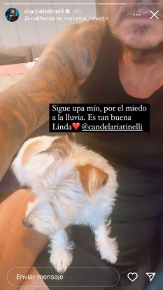 En la noche de anoche se vivió una fuerte tormeta en Buenos Aires y Marcelo Tinelli no fue indiferente a la situación, ya que tuvo que proteger a una de las mascotas de su familia. Así, en Instagram mostró el tierno momento que vivió con la perra de su hija, Cadelaria Tinelli.