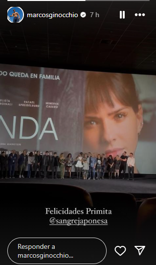 A pesar de que no ha confirmado su relación con la ex hermanita, los rumores se terminaron por confirmar. Mismo caso está viviendo con la China Suárez. Marcos Ginocchio asistió a la avant premiere de “Linda” en el Shopping Dot. Se trata de la nueva película que protagoniza la actriz. El ganador de Gran Hermano le dedicó una historia y escribió: “Felicitaciones primita”, dejando entrever que son buenos amigos.