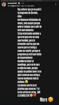 Estas palabras no pasaron desapercibidas para Morena, quien decidió responder con un contundente descargo en sus redes sociales en donde aclaró: “”Yo no pedí ir al programa de Carmen, ellos me llamaron infinidades de veces”, destacó la influencer en primer lugar.