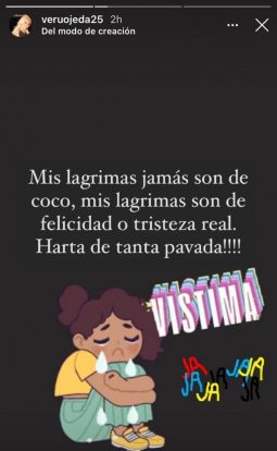 “Mis lágrimas jamás son de coco, mis lágrimas son de felicidad o de tristeza total, harta de tanta pavada”, afirmó la mamá de Dieguito Fernando, agregando un emoticón de una nena llorando, rodeándola por “ja ja ja”. Como si fuera poco, inmediatamente, compartió una foto junto a su hijo y sentenció: “Te mandamos un besito, estúpida”.