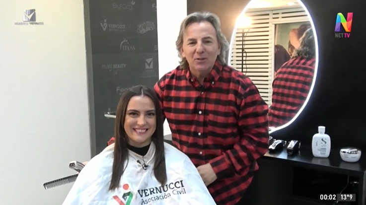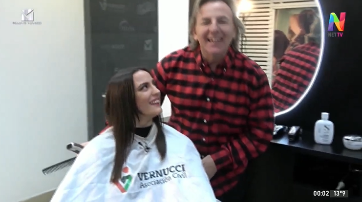 “Es una técnica con la tijera eléctrica. Voy sacando el peso por dentro y lo voy rebajando”, contó el estilista. “No pesa el pelo para jugar. Es importantísimo“, destacó Cande Salinas.