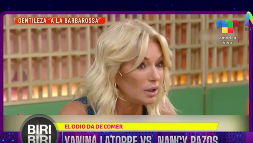 Yo la pasé bárbaro, la que no lo habrá pasado bien fue Nancy Pazos porque como vine yo no quería venir. La noté nerviosa, desencajada“, comenzó diciendo Yanina Latorre a América TV tras su participación en A la Barbarossa de Telefe, donde conduce Georgina Barbarossa y se desempeña Mariana Brey y se dirigió hacia Nancy Pazos que “no participaba de la conversación“.