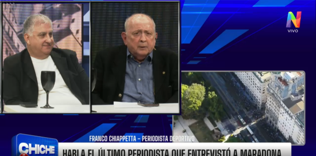 En este contexto, en la primera emisión de Chiche en vivo, en la vuelta de Chiche Gelblung a Editorial Perfil, el periodista deportivo Julio Chiappetta se hizo presente en el estudio, remarcó que fue quien le hizo la última entrevista y recordó un acontecimiento que lo seguirá guardando tanto en su corazón como en su retina.