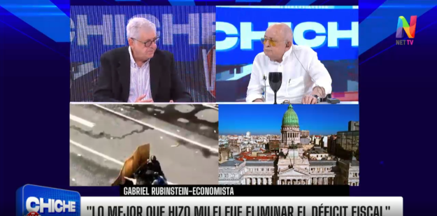 Chiche Gelblung planteó que parte del ajuste y la eliminación del gasto público perjudicó a los jubilados, a lo que Gabriel Rubinstein respondió: “Hubo una caída de los jubilados“. Y agregó sobre la actualidad económica: “El ajuste fiscal no es recesivo, porque ya se hizo. Hay una economía que gira a dos velocidades y a la energía, minería y el campo les fue muy bien. La economía de Milei genera poco empleo y la industria o construcción están sufriendo la mezcla de un dólar relativamente bajo y una gran apertura externa“.