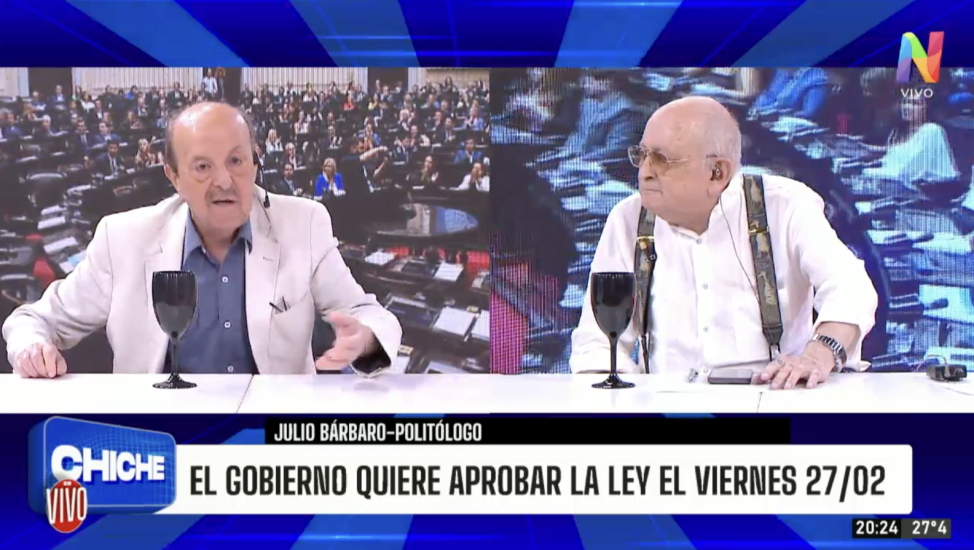 En una nueva entrega de ‘Chiche en vivo’, el periodista Chiche Gelblung recibió al politólogo Julio Bárbaro, quien analizó con dureza el avance de la reforma laboral tras la votación en el Congreso. Para el analista, el proyecto actual carece de profundidad y se sostiene sobre argumentos falaces. “Esta ley es triste porque salen de la excusa de que hay que hacer alguna reforma y terminan en un cachivache”, sentenció Bárbaro, argumentando que el diseño de la norma perjudica directamente a los sectores más vulnerables: “Le sacan a los jubilados para que los grandes grupos no paguen indemnización”.