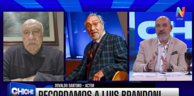 En Chiche en vivo, dialogaron con el experimentado actor Osvaldo Santoro que supo compartir escenario y televisión y fue uno de los íntimos amigos de Luis Brandoni. “Se fue el último referente y actor importante, más allás de que sus colegas tengamos una gran trayectoria. Lo de ‘Beto’ excede mucho el trabajo de todos, es una pérdida enorme. Empecé trabajando con el en ‘Mi cuñado’ durante tres años seguidos y haciendo un personaje llamado Sinistri”, comenzó diciendo el entrevistado.