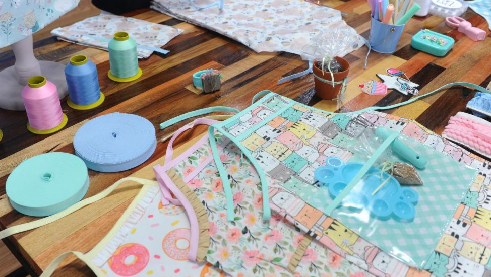 Vero comenta que los delantales son una opción muy económica y que podes hacer que sea una gran salida laboral. Los delantales son prácticos y es clave armar sets temáticos. Recordá que no necesitas un molde para confeccionarlo, es simple y hermoso.