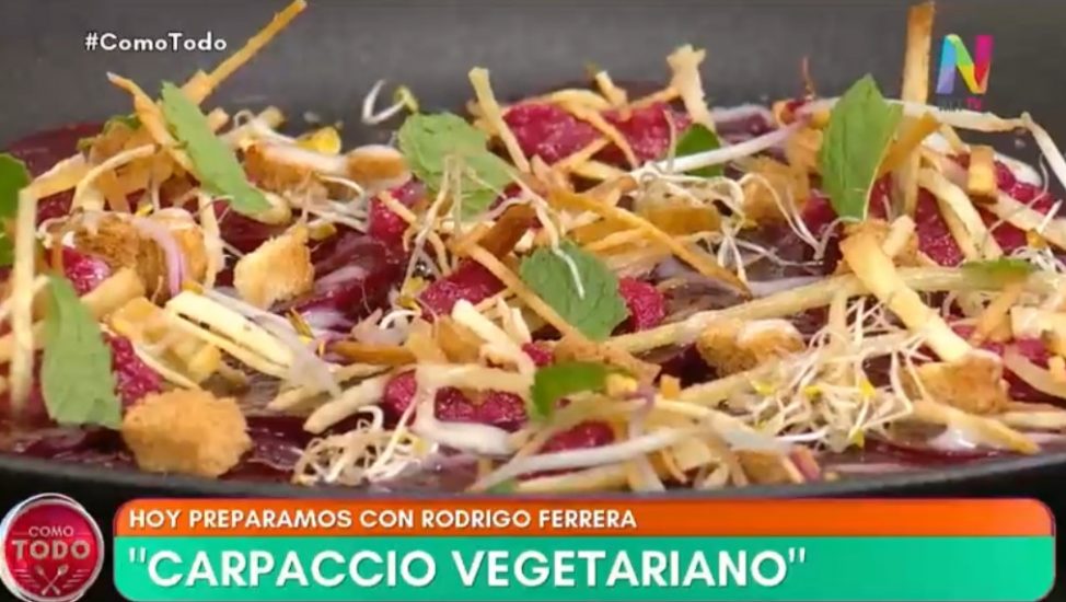 Luego del intenso plato que tenía a los muslos de pollo como protagonistas, Rodrigo Ferrara, chef invitado que reside en Mallorca, trajo un Carpaccio vegetariano, demostrando que se puede hacer un plato saludable y rápido para sorprender a todos.