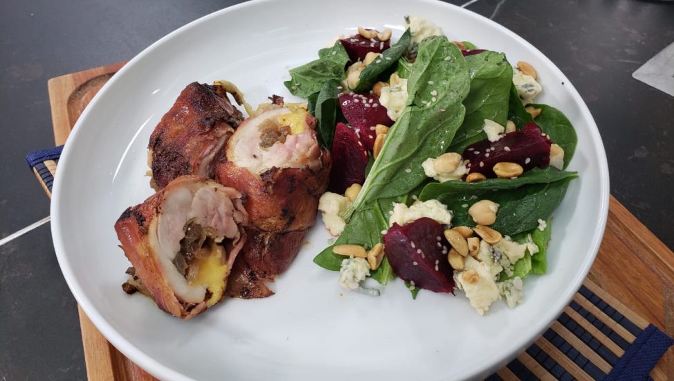 Luego fue Paco Almeida quien se encargó del plato principal e hizo muslitos rellenos con ensalada de legumbres.