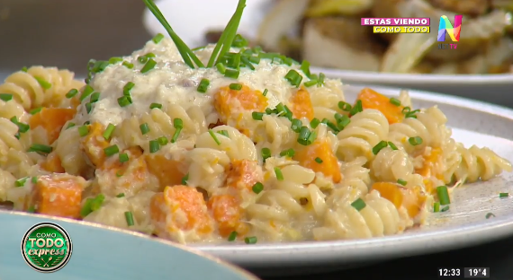 Preparar un pesto a base del corazón de alcaucil procesado con queso crema, jugo de limón, aceite de oliva, sal y pimienta. Por otro lado saltear daditos de calabaza a los que se le puede agregar agua de alcaucil. Esta preparación la mezclamos con pasta al dente, salteamos todo junto y luego agregamos el pesto.