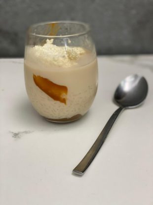 - Servir el arroz con leche frío en una taza, por arriba un poco de la crema de coco.