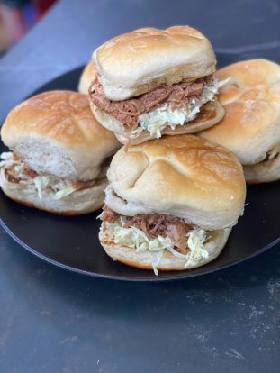 SANDWICH DE CERDO DESMECHADO A LA BARBACOA CON ENSALADA