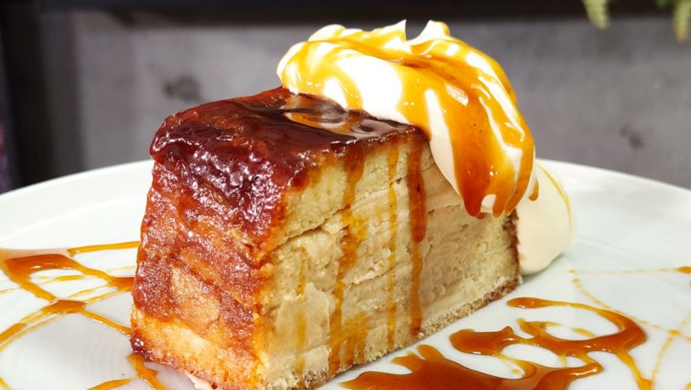 - Añadir otra capa de pan, pero esta vez con el lado de la manteca boca arriba. Luego otra capa de manzanas y más ligue hasta cubrir.