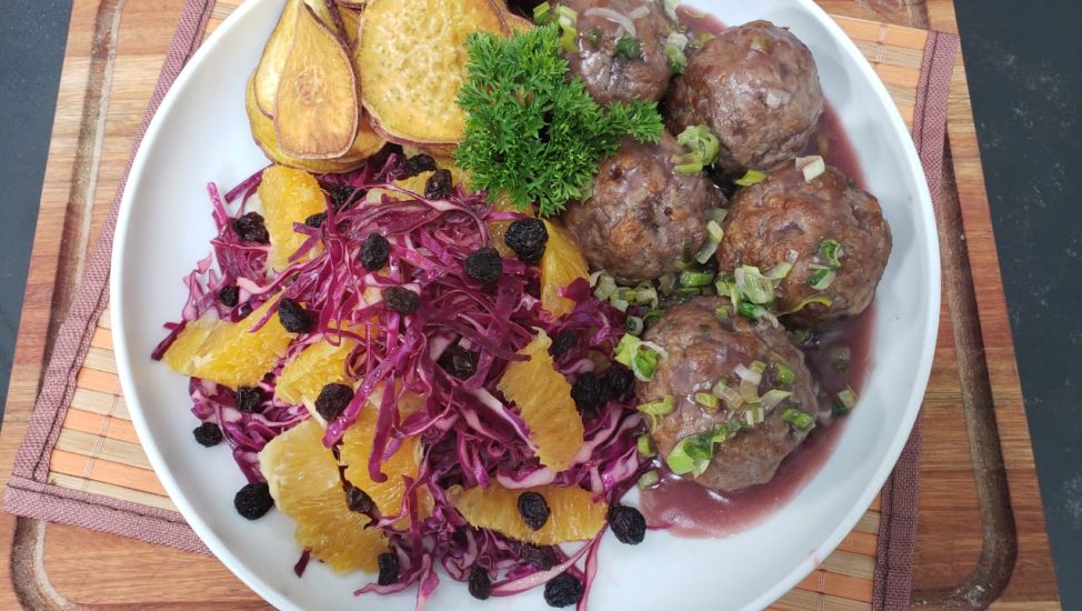 Es que Paco Almeida se alejó de las sobras y eligió preparar albóndigas de cerdo con ensalada de repollo y naranja. Mirá: