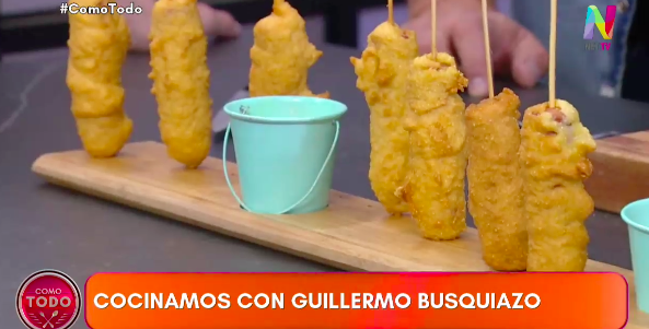 El cocinero Guillermo Busquiazo nos trajo una receta súper original a Como Todo de este martes 1 de abril, donde aprendimos cómo hacer unos originales corn dogs.