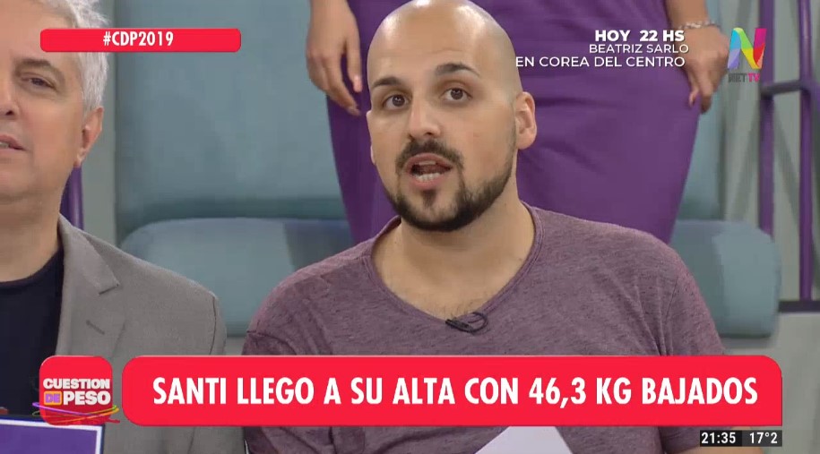 Llegó el momento más esperado por Santi: luego de estar fuera de la clínica, volvió al programa para pesarse y demostrar que seguía firme con el tratamiento.