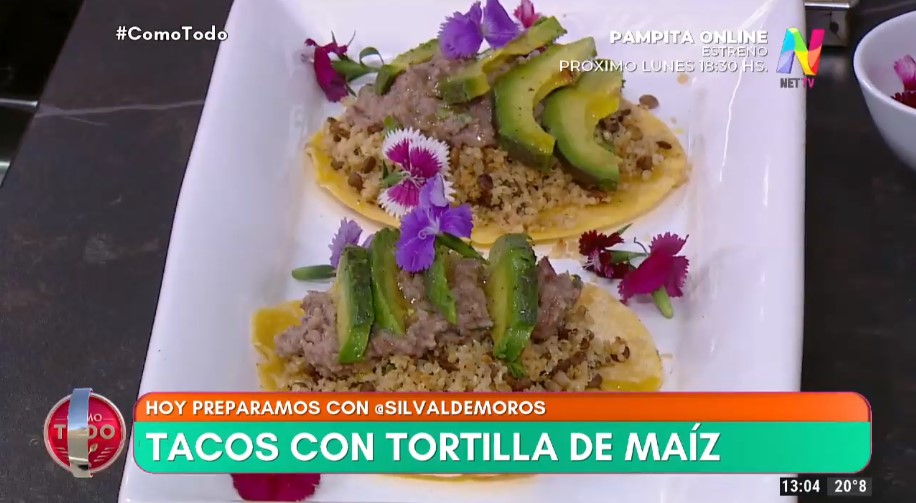 Sil Valdemoros preparó tacos con tortillas de maíz amarillo, quinoa, lentejas, crema de frijoles y salsa de yogur.