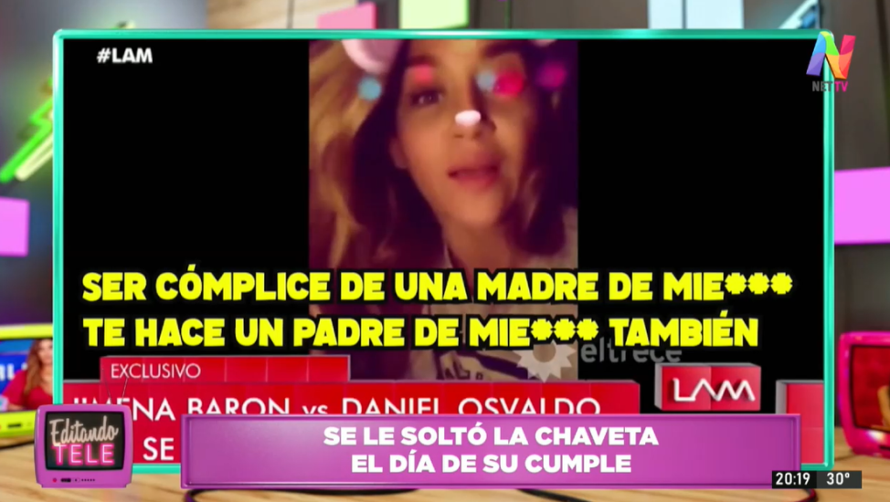En un nuevo programa de Editando tele con Luis Piñeyro, Diego Arvilly, Calu Bonfante, Victoria Puig y Damián Moya debatieron sobre la contundente respuesta de Jimena Barón a Daniel Osvaldo por no permitir que su hijo Morrison lo llame el día de su cumpleaños.