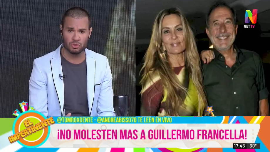 En un nuevo programa de El impertinente, Tomás Dente apuntó contra la prensa por querer ahondar en la vida privada de Guillermo Francella que se separó de su esposa Marynés Breña tras 36 años de matrimonio. A raíz de la sorpresiva separación, Paula Varela intentó mantener un dialogo con Ricardo Francella, el hermano mayor del comediante y su reacción no fue la mejor.