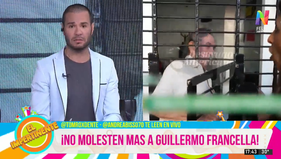 “No pueden ir a buscar a todo el mundo, recurran a la fuente, llamen por teléfono, mándenle un mensaje a Guillermo y si no quiere hablar, respétenlo, es una figura. Tratemos de hacer una autocrítica. Han hecho un uso y un abuso de la reacción del hermano de Francella desmedida. El tipo no es experimentado, le pidió encarecidamente al cronista 10 veces que no lo moleste. Estamos invadiendo su terreno siendo una persona totalmente desconocida y que no es del medio”, comentó furioso.
