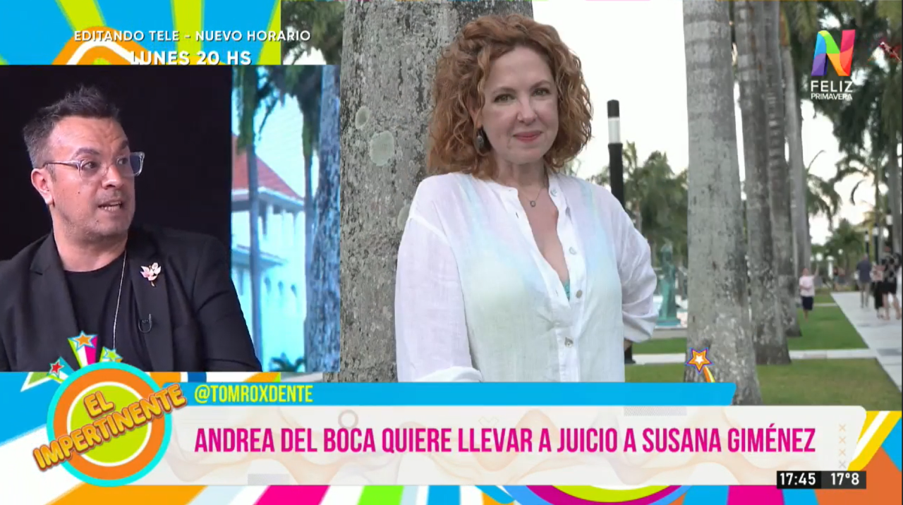 En un nuevo programa de El impertinente, Tomás Dente, Franco Casella, Andrea Bisso, Ana Laura Román y Guille Barrios dieron información acerca del juicio millonario de Ricardo Biasotti contra Andrea del Boca, Susana Giménez y Telefe por dos millones de dólares.