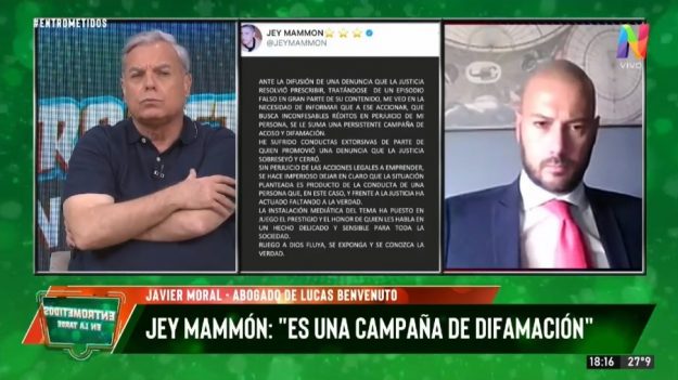 Jey Mammón y una “campaña de difamación”: El abogado de Lucas Benvenuto le respondió en vivo