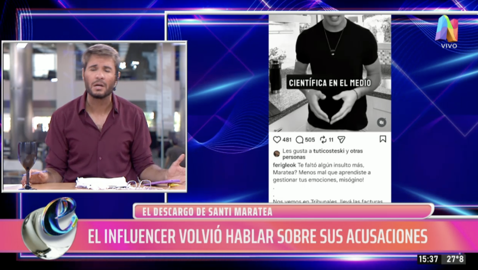El periodista centró su crítica en el uso desmedido de las demandas por injurias, advirtiendo que este tipo de estrategias suelen terminar en un laberinto de contrademandas innecesarias. El conductor cuestionó directamente la actitud de su colega frente al caso: “Fernanda, ya tuviste el cara a cara con él. ¿Desde qué lugar te ponés en esa situación de fiscal intentando controlar los gastos de Maratea si la gente sigue confiando en él? Me parece que es una cocarda que no te corresponde, esa cosa de ‘justiciera'”, disparó, marcando una clara distancia con la postura de Iglesias.