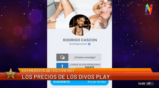 En ese sentido la chimentera explicó: “Están en Divas Play pero en la sección ‘Chad’, donde están los tipos, los famosos mostrando su cuerpo. Pagás un dolaruco más y ves más. El primero, el más caro, es el ‘Chef hot’, Rodrigo Gacón, que sale doce dólares por treinta días. Yo invertí mi sueldo para que las ‘gossiperas’ vean, se va poniendo picante en cada foto. Este es el más caro y que más contenido genera y que más pide la gente”.