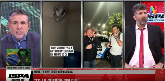 Frente a la atenta escucha de Diego Moranzoni, conductor del program de Net TV, Mauricio dio mayores precisiones desde Copacabana: “Río de Janeiro es reconocida a nivel internacional como una ciudad turística. Hasta este momento hay 130 muertes, más de 140 detenidos. En la conferencia de prensa que realizaron desde la gobernación, que está enfrentada con Lula da Silva, nos enteramos de que todos los muertos en las dos favelas más peligrosas de aquí, que son 700, 99 fueron identificados y 77 de ellos tenían antecendentes policiales”.