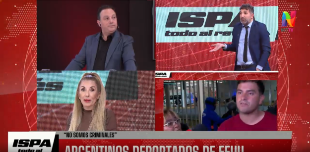 En ISPA, Todo al revés, con la conducción de Diego Moranzoni y el acompañamiento de un gran panel, contaron con la presencia de Lorena Oviedo, empresaria y conocedora del tema. “Argentina empezó con un primer avión con 16, que es lo que se dice en la prensa, pero no es real: se está haciendo con un perfil muy tranquilo, están viniendo de a poco y son 300 los deportados argentinos sin papeles. Se los culpa de delito migratorio“, comenzó diciendo la invitada.