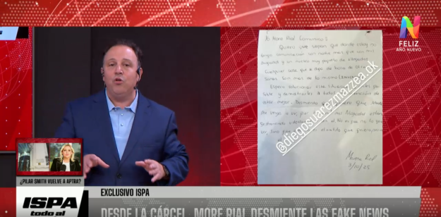 Martín Leiro complementó a su compañero de aire de ISPA; “Su situación cambió. En ese momento, dice que no tiene comunicación y no habla con nadie. Ella tiene prohibido tener contacto con la prensa mediante esas cartas. Cuando cae detenida, todos estaban con la incertidumbre de cómo estaba ella, me dijo que sacaba un comunicado, lo hizo, lo firmó adelante mío y fui yo quien te lo trajo en exclusiva. Después circuló por varios medios, pero me extrañó que en un programa tan prestigioso den una noticia de octubre como una primicia de la fecha”.