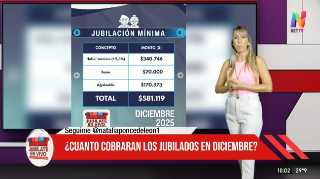 En una nueva entrega de ‘Jubilate en vivo’, la Dra. Natalia Ponce de León presentó una columna con todos los detalles confirmados sobre el cronograma de pagos y los montos que percibirán los jubilados y pensionados durante el mes de diciembre.