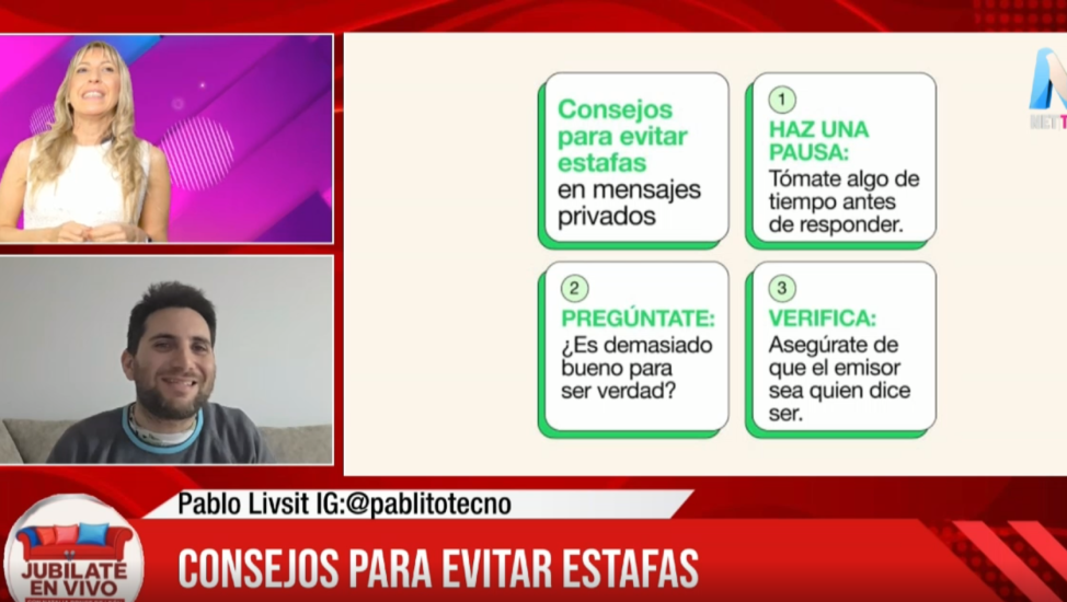En este contexto, en ‘Jubilate en vivo‘ con Natala Ponce de León tuvieron la oportunidad de contar con la presencia, mediante videollamada, de Pablo Livsit (@pablitotecno) para dejar una serie de recomendaciones y prevenciones para que nadie más sea víctima de delincuentes virtuales.
