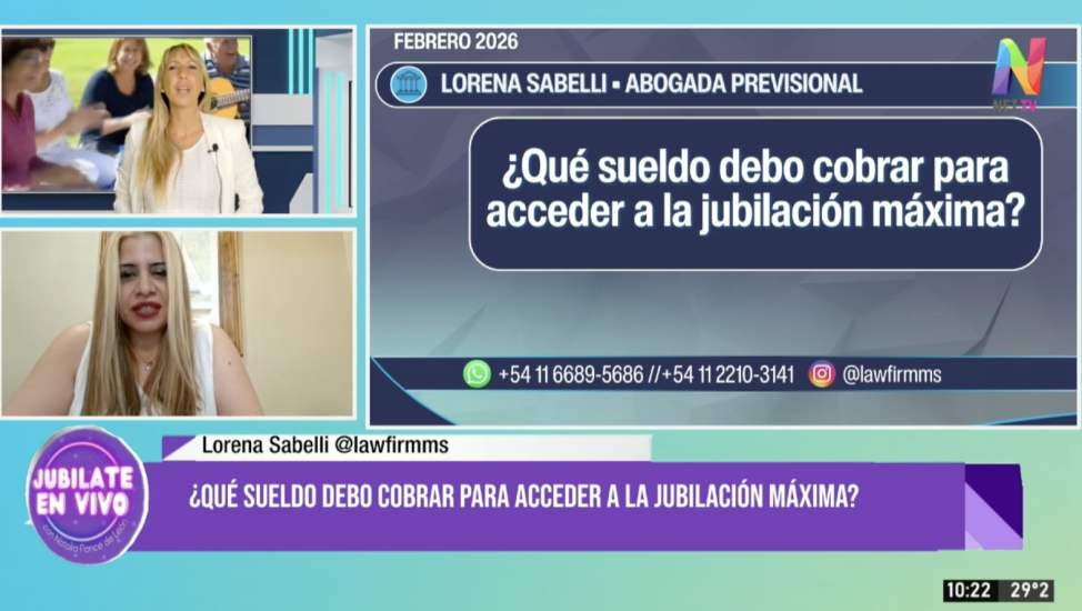 El interrogante sobre cuánto se debe percibir en la etapa activa para alcanzar el techo jubilatorio fue el eje central de la última entrega de ‘Jubilate en vivo’. Durante el programa, la Dra. Natalia Ponce de León conversó con su colega, la abogada Lorena Sabelli, quien brindó precisiones sobre el complejo cálculo que realiza la ANSES para determinar los haberes más altos. La especialista aclaró que, si bien cada historial laboral es único, existen parámetros generales que permiten a los trabajadores de ingresos elevados proyectar su futuro financiero.