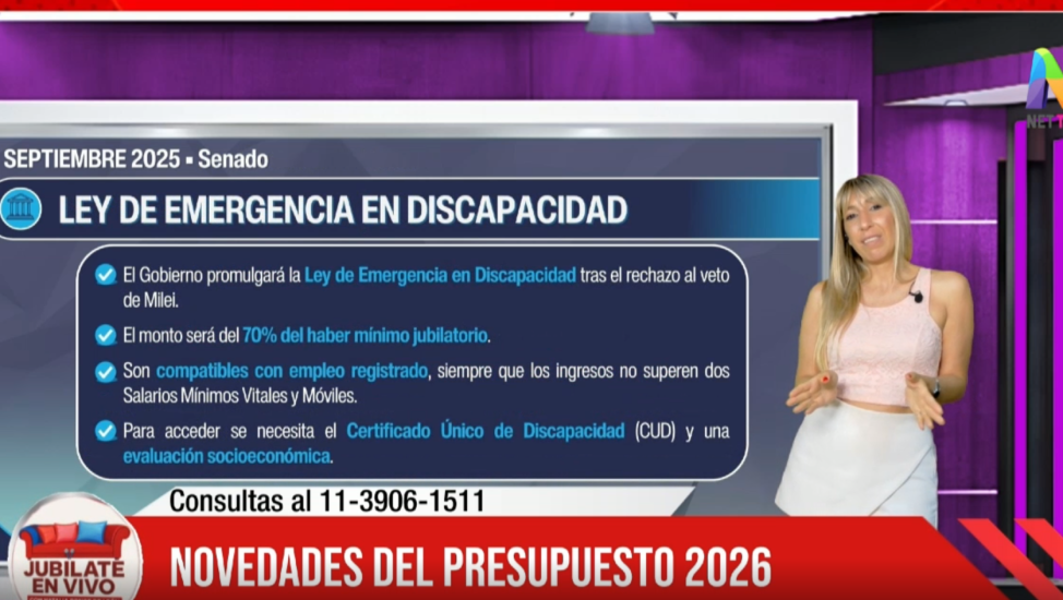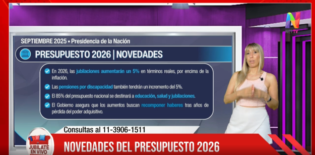 En esta oportunidad, la ley de Emergencia en Discapacidad y el Presupuesto 2026 poseen sus pormenores y la presentadora explicó cada pasa para llevar claridad a los televidentes: “Javier Milei habló en cadena nacional y comentó que dentro del Presupuesto 2026 estarán incluidos los jubilados. Será un 5% por encima de la inflación, lo cual quiere decir que más allá de la inflación que haya el año que viene, por lo que igualmente aumentará el haber y rondará en un 11%, habrá un Presupuesto de un 5% que podrá aumentarse“.