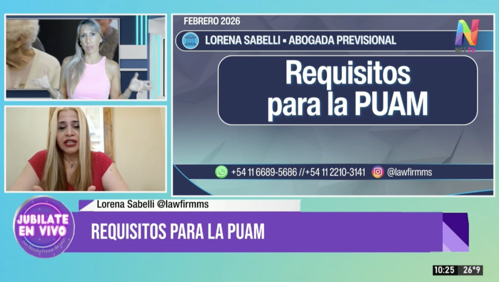 En una reciente emisión de ‘Jubilate en vivo’, la Dra. Natalia Ponce de León recibió a la abogada Lorena Sabelli para clarificar las dudas más frecuentes sobre la Pensión Universal para el Adulto Mayor (PUAM). Ante las consultas de la audiencia de Net TV, la letrada explicó que este beneficio está diseñado específicamente para personas mayores de 65 años, sin distinción de género, que se encuentran en una situación de vulnerabilidad previsional.