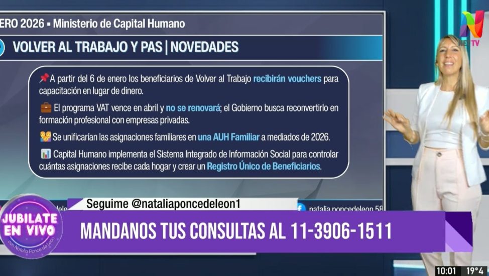 El programa ‘Volver al Trabajo’ (VAT), dependiente del Ministerio de Capital Humano de la Nación, ingresará en 2026 en una etapa de redefinición profunda que impactará de lleno en miles de beneficiarios. Así lo informó la conductora del ciclo Jubilate en Vivo, quien detalló una serie de cambios estructurales que comenzarán a regir desde el 6 de enero y que anticipan el cierre del esquema tal como se lo conoce hasta ahora.