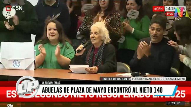 Este hallazgo, el segundo en 2025 tras la identificación de la nieta 139 en enero, se produce en un contexto adverso, marcado por el recorte de fondos a organismos de derechos humanos bajo el gobierno de Javier Milei y los ataques negacionistas liderados por sectores afines a la vicepresidenta Victoria Villarruel. “Pese a todos las Abuelas de Plaza de Mayo siguen adelante, ejemplo total y absoluto (…) sigue la búsqueda, cualquiera que tenga dudas tiene que acercarse allí, es una prueba muy breve y te sacan las dudas y ayudan a seguir armando este rompecabezas truculento que dejó la última dictadura militar”, expresó el conductor.