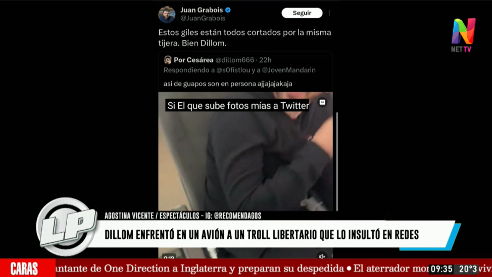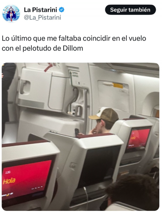 En un nuevo programa de “La Previa” con Elizabetg Peger y Alejandro Gomel compartieron las imágenes del cruce entre Dillon y el tuitero “La Pistarini”, quién provocó por la red social X al cantante y en el vuelo se generó un fuerte cruce.