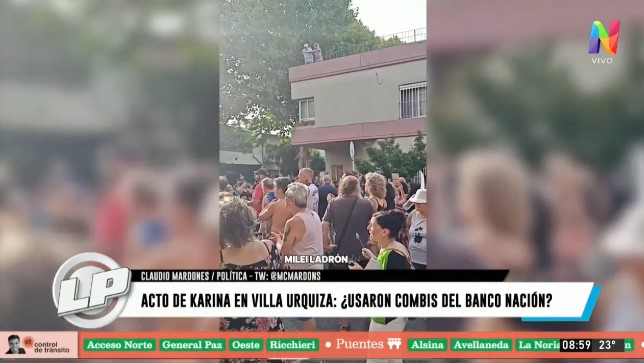 En ese sentido el experto en política explicó: “Empezaron a circular distintos interrogantes, no solamente por las dos movilizaciones, el otro dato de color se empezo a surgir interrogantes y es si finalmente si quienes asistieron a acompañar a Karina en qué se movilizaron, ayer le preguntamos a Enzo Di Fabio, de la grupacion ‘La Carlos Menem’ si se habian trasladado en camionetas del Bano Nación”.