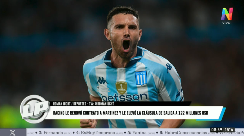 El periodista de Net TV destacó cómo esta renovación responde al interés de clubes como River Plate, donde Marcelo Gallardo expresó su deseo de incorporar al delantero. Iucht subrayó además el valor simbólico de la cláusula, que supera incluso las tasaciones de estrellas internacionales como Lautaro Martínez, y el mensaje de Racing al mercado: sus figuras no están en venta.