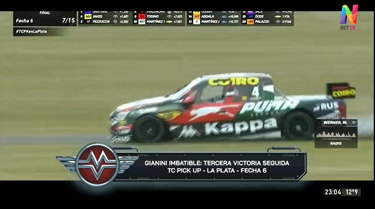 Juan Pablo Gianini obtuvo su tercera victoria al hilo en el TC Pick Up y quedó puntero en el campeonato. El nacido en Salto, se quedó con el mejor registro en la sesión clasificatoria que por la 6ta. fecha se completó en la fría tarde sabatina sobre los 4,265 kms. del autódromo Roberto Mouras, de la ciudad de La Plata. Toda la información de la fecha en Máxima Velocidad.