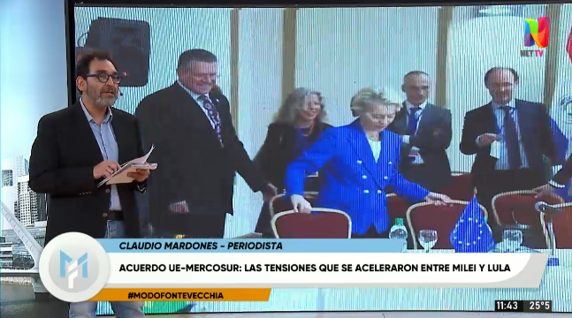 En una nueva entrega de ‘Modo Fontevecchia’, el periodista Claudio Mardones detalló los alcances del inminente acuerdo entre la Unión Europea y el Mercosur, que tendrá su punto cúlmine este fin de semana en Montevideo, Uruguay. El tratado propone la creación de una de las zonas de libre comercio más grandes del mundo, eliminando aranceles para el 90% de los bienes intercambiados entre ambos bloques.